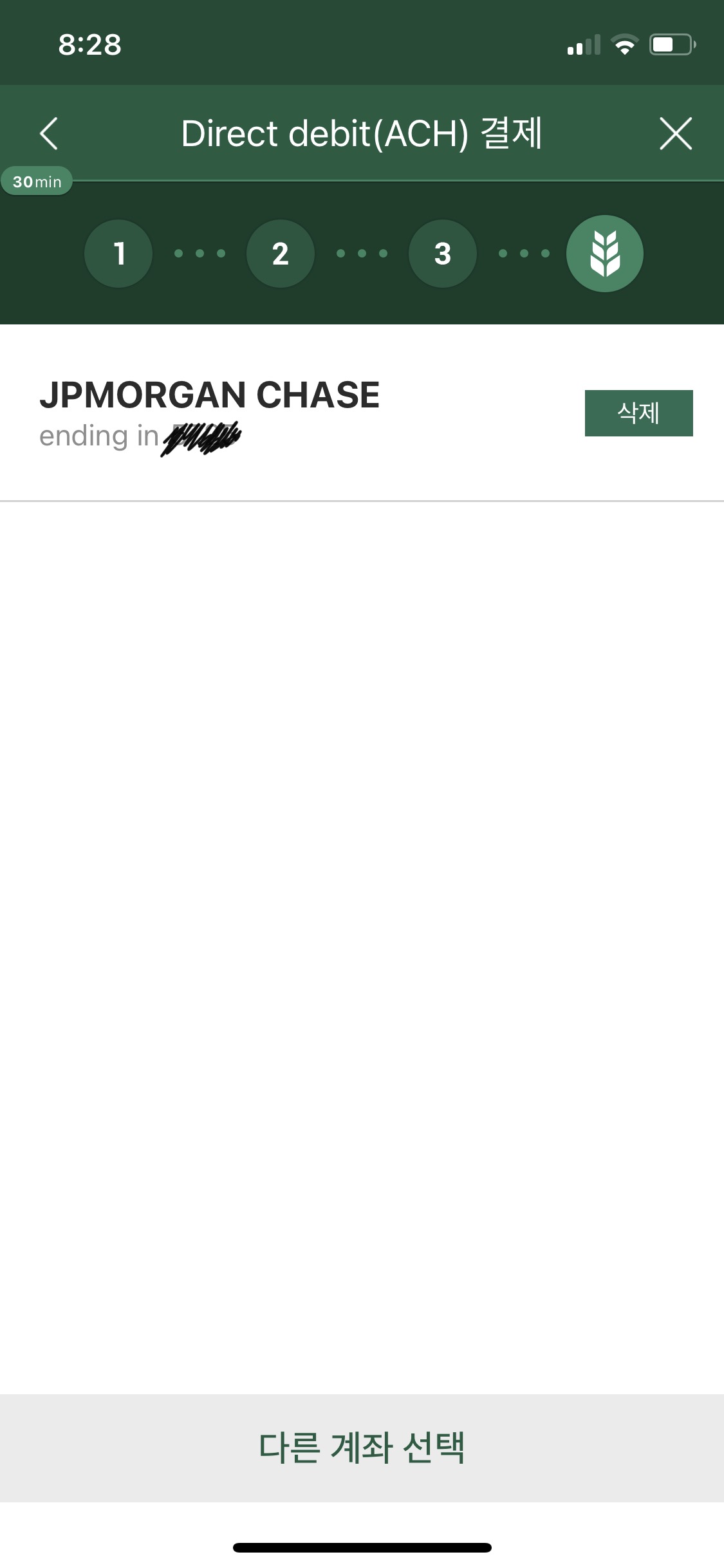 돈이 인출될 미국 계좌 정보 등록 및 선택하면