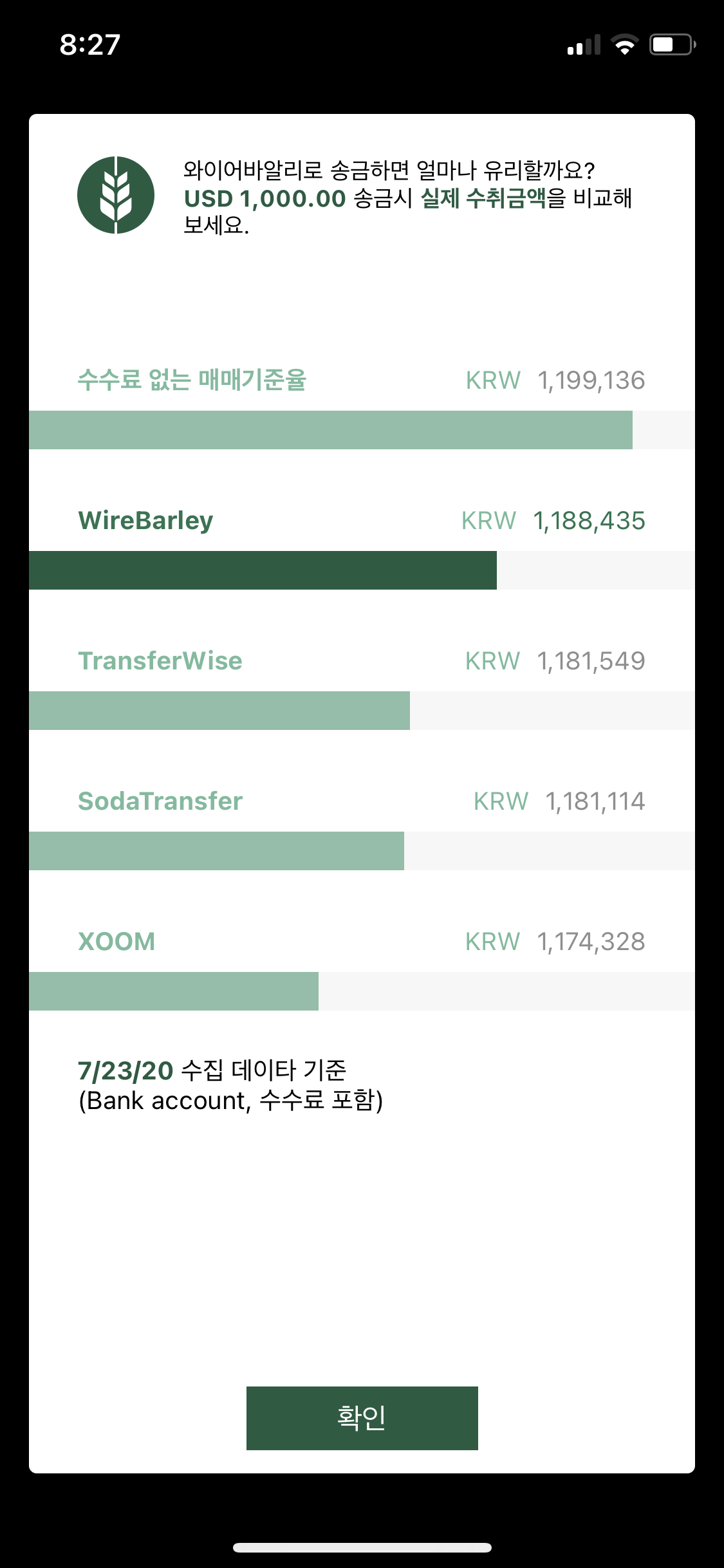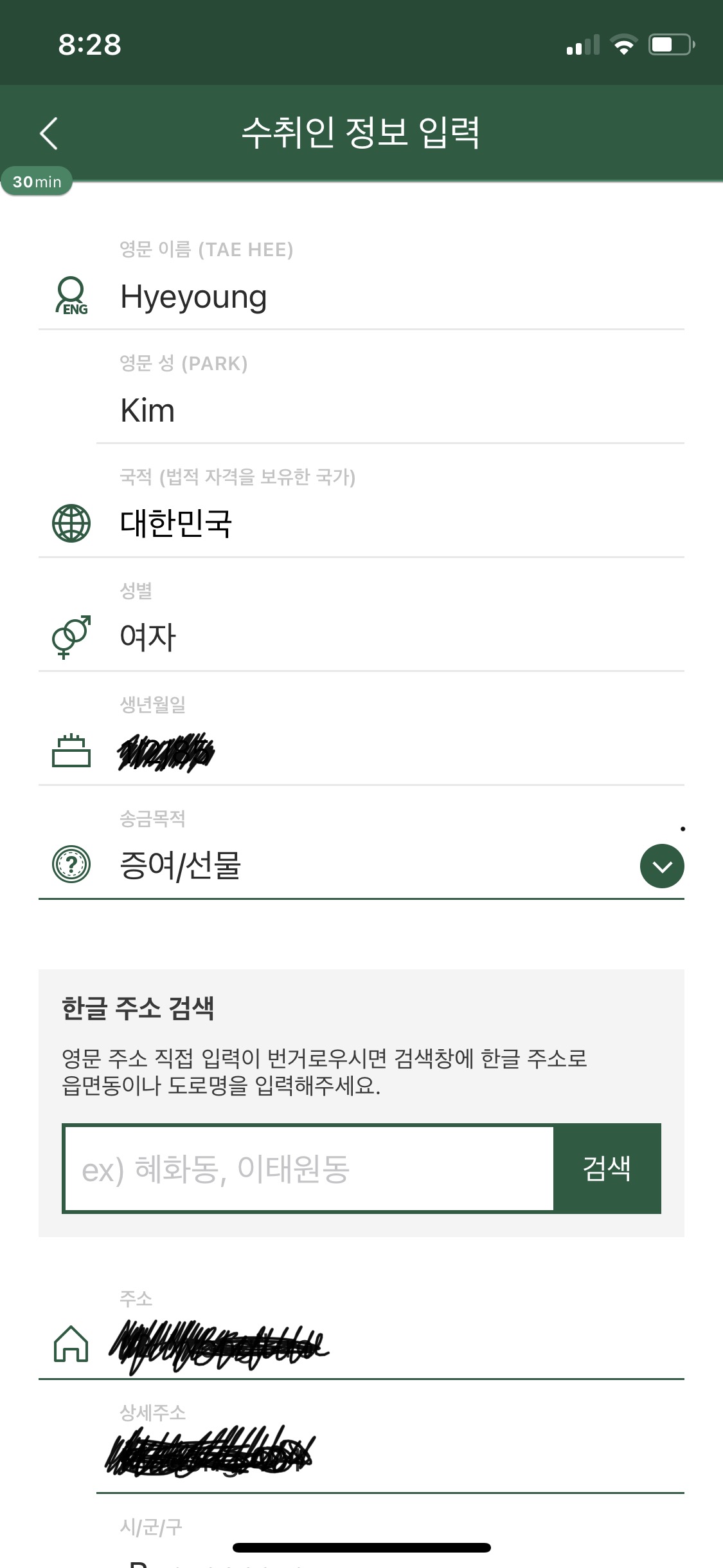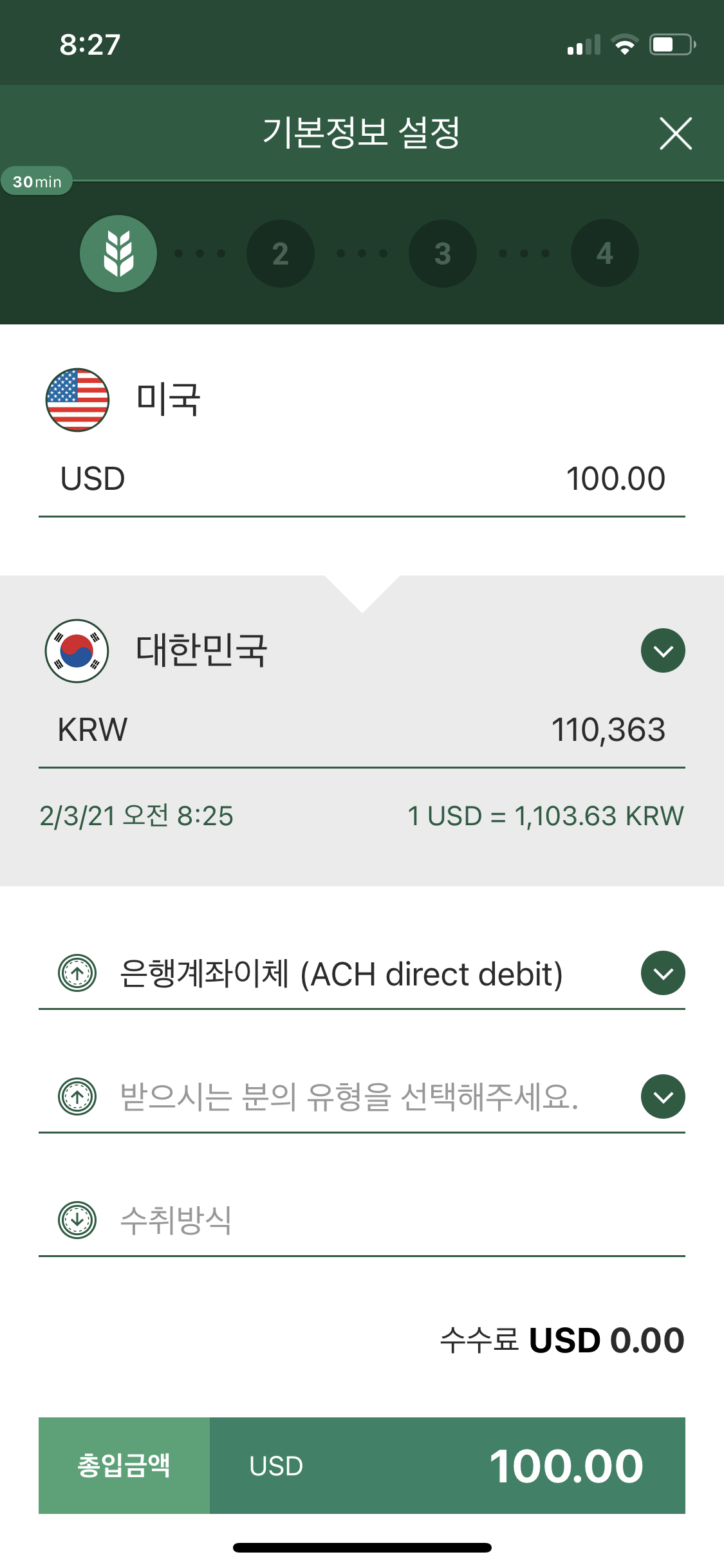 몇분 만에 미국에서 한국으로 송금이 모두 이루어지더라구요.